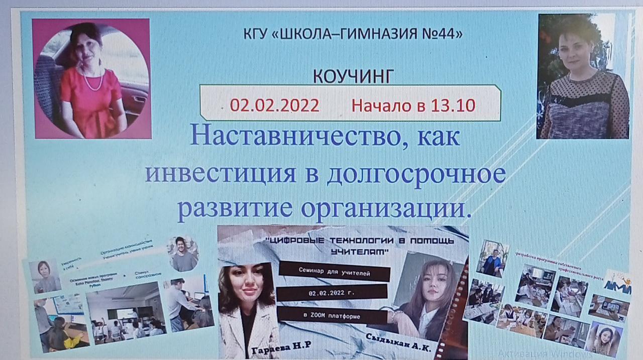 02 ақпан 2022 0 1 2 3 4 5 Онлайн коучинг с учителями школы Ответственный зам.директора по УР - Халыкова А.М.