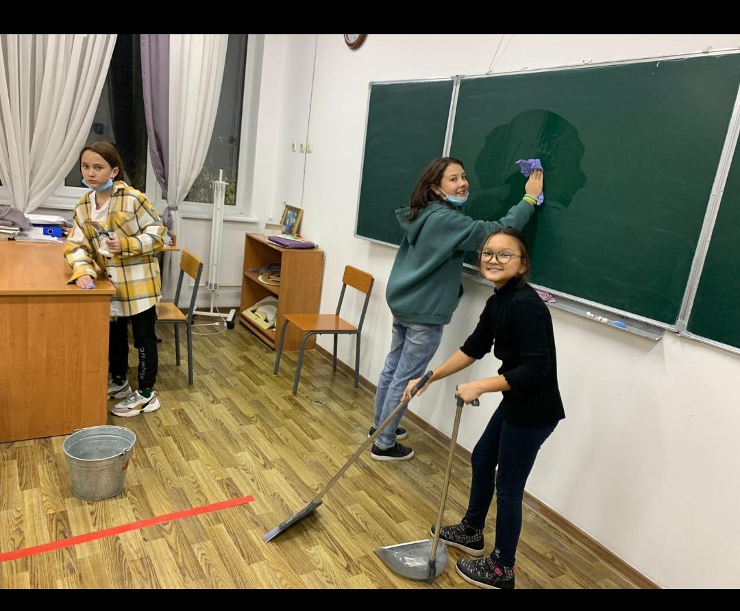 Вооружившись необходимым инвентарем, ребята с удовольствием привели в порядок территорию школы. Общими усилиями за несколько часов вся территория преобразилась: все земли были очищены, а вокруг школы-облагорожены.