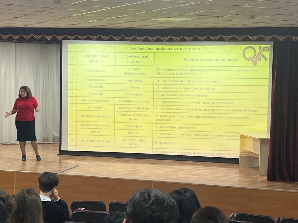 Сегодня в школе прошла профориентация для старших классов от Образовательного комплекса "BOLASHAK". Было рассказано о подготовке ЕНТ, профильных предметов и специальностей, сроки сдачи ЕНТ, этапы ЕНТ так же о препятствиях при подготовке к ЕНТ.