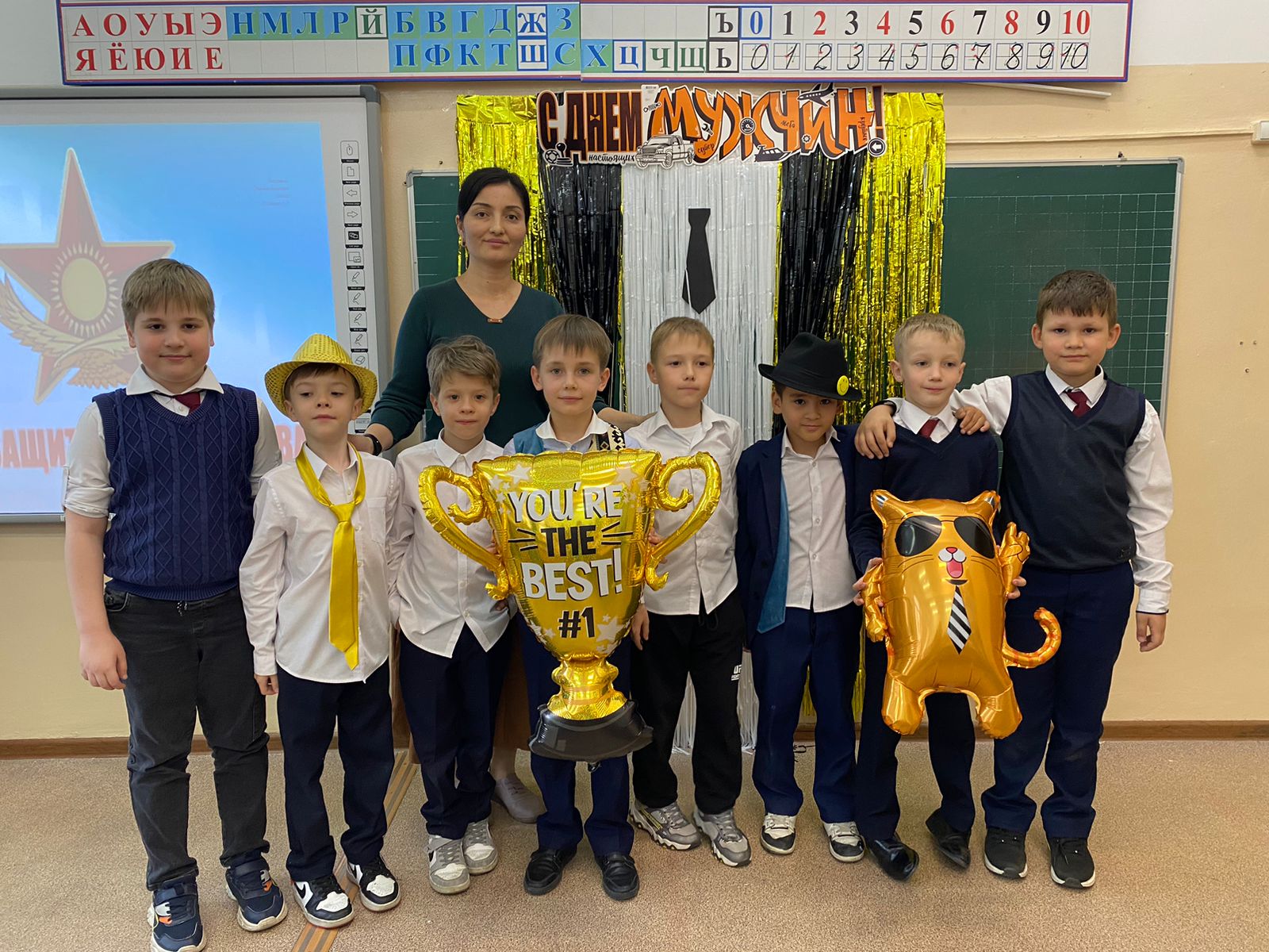 Мерекенің мақсаты:" Ұлдар, қорғаушылар мерекесінің атмосферасын құру, сондай-ақ қуанышты көңіл-күй, ата-аналарды, достарды және жақындарын өлеңдермен, әндермен, билермен, ойындармен және біліммен қуантуға деген ұмтылыс " Сынып жетекшісі : Рузиева Гүлзара Марисовна