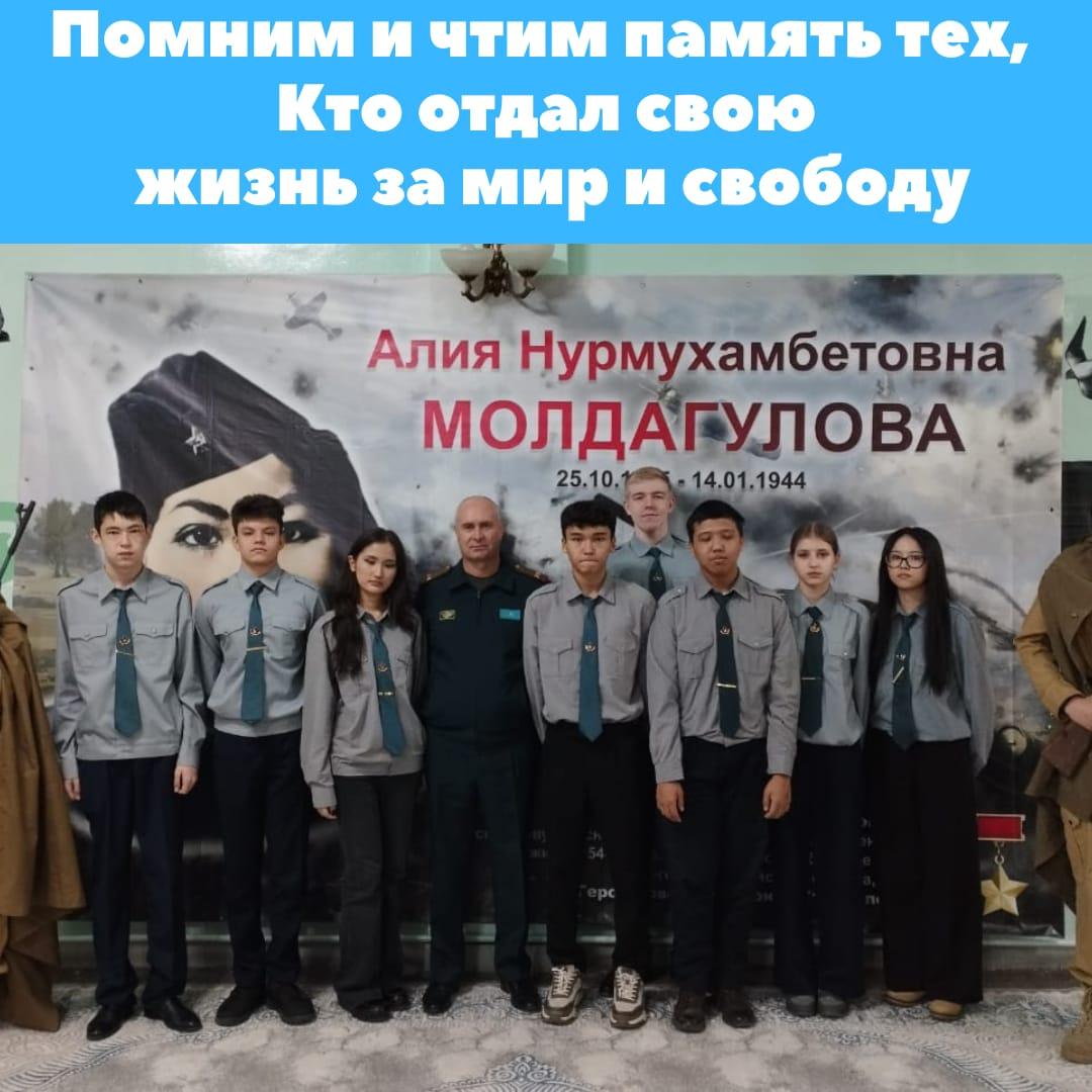 2024 жылдың 18 қарашасында 10 сынып оқушылары Оқушылар үйіне барып, Ұлы Отан соғысының батыры Әлия Молдағұлованың ерлігне арналған батылдық және әсерлі мерекелік кеш өтті. 🌺