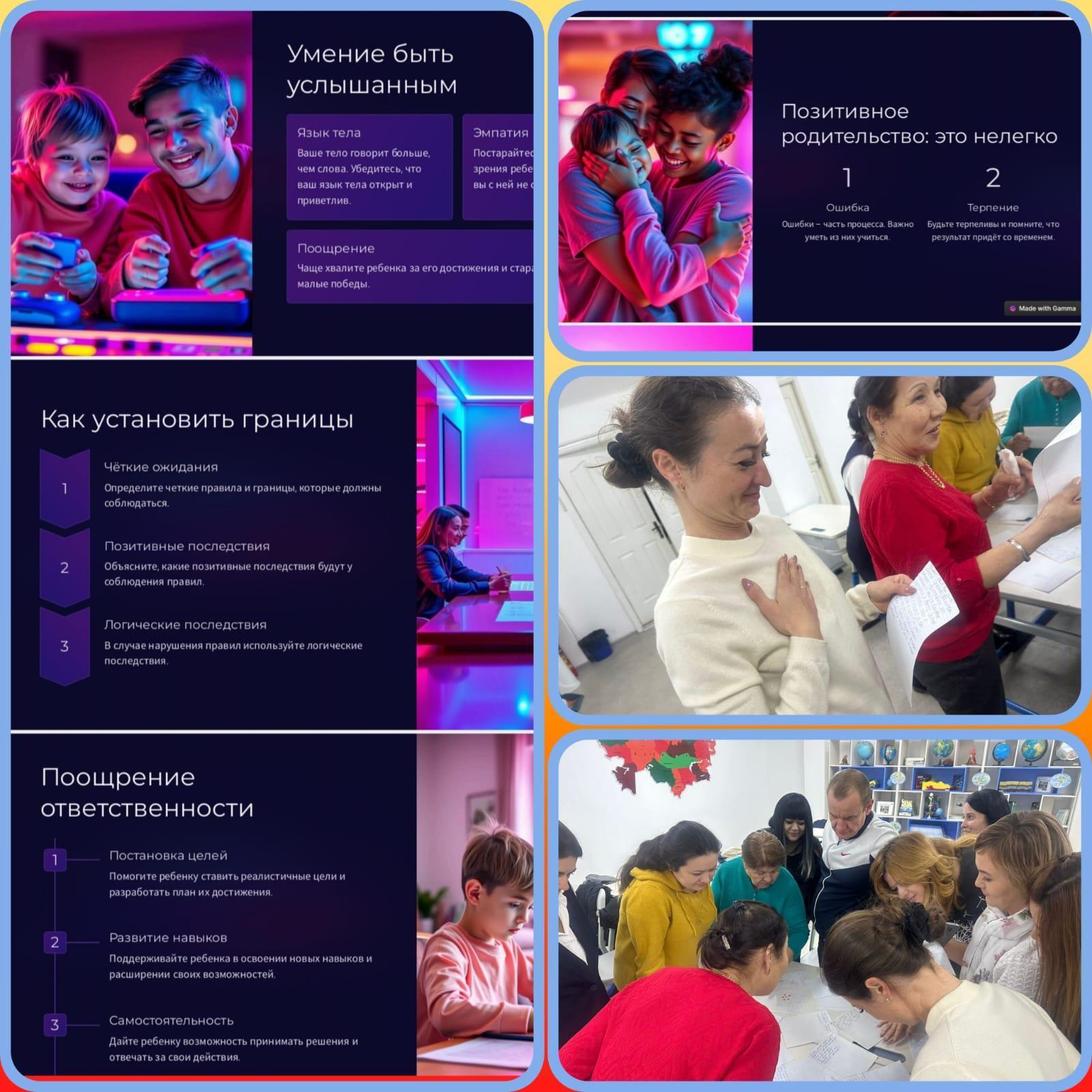 Диалог барысында позитивті тәрбиелеудің принциптері мен қазіргі жасөспірімдердің жас ерекшеліктері қарастырылып, ата-аналарды позитивті ата-ана болу дағдыларын меңгеруге мотивация берілді. Ата-аналардың назарын балалардың күнделікті өміріндегі күшті мінез-құлық қасиеттеріне аудару, ең бастысы, балаларға қауіпсіздік пен қорғаныс қамтамасыз ету, зорлық-зомбылықсыз тәрбиелеу және адамдармен сау қарым-қатынасты қалыптастыруды үйрету қажет екендігі айқындалды.