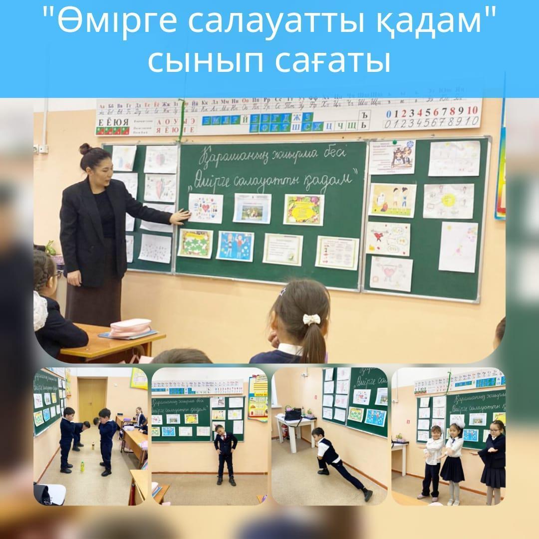 Салауатты өмір салтын қалыптастыру мақсатында 1-ә сыныбында "Өмірге салауатты қадам" атты сынып сағаты өтті. Оқушылар денсаулықты сақтау, дұрыс тамақтану және белсенді өмір салтының маңыздылығын түсініп, қызықты ойындар мен жаттығулар арқылы білім алды.