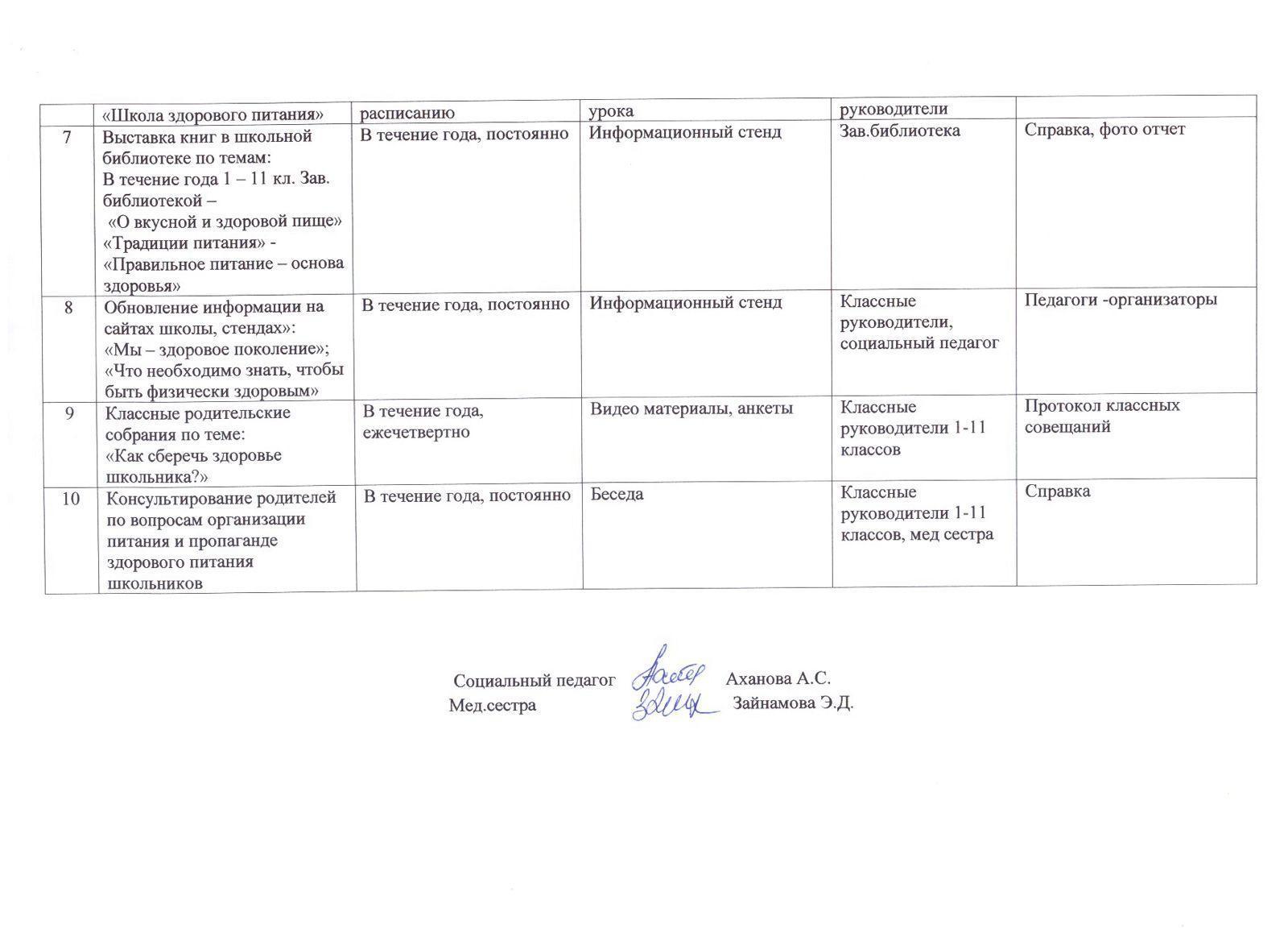 2023-2024 оқу жылына дұрыс тамақтануды насихаттау бойынша іс-шаралар жоспары/План мероприятий по профилактике здорового питания на 2023-2024 учебный год