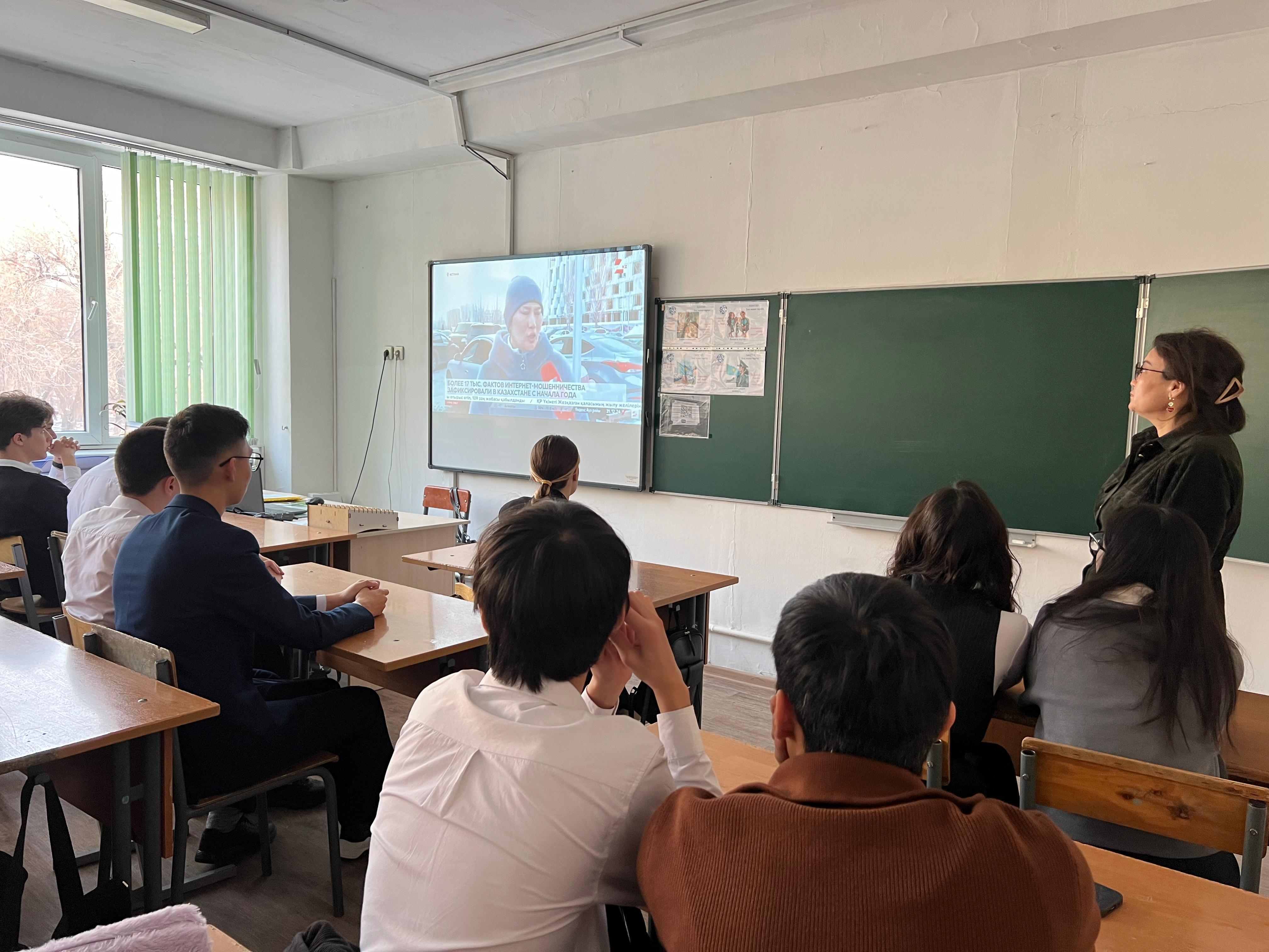 11-сыныпта "Бала және Заң" тақырыбында сынып сағаты өтті, онда оқушылар Қазақстан заңнамасы аясындағы өз құқықтары мен міндеттері туралы білді. Соңғы уақытта кең таралған алаяқтықтан қорғау мәселелеріне ерекше назар аударылды. Олар алдаудың құрбаны болмауды және күнделікті өмірде қандай сақтық шараларын сақтау керектігін түсіндірілді. Өйткені, ескертілген-Қарулы дегенді білдіреді!