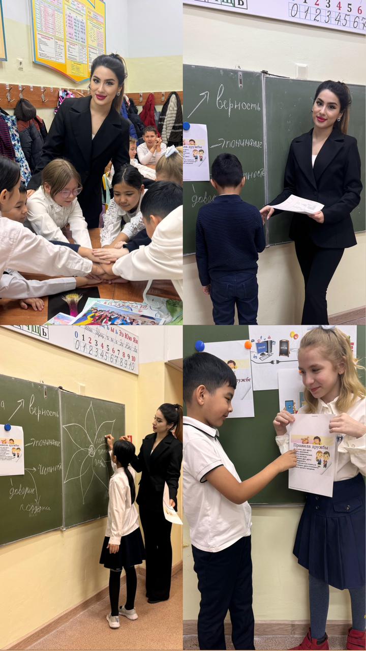 4" Б "сыныбында "Достық ережелері" тақырыбында сынып сағаты өтті. Сабақтың мақсаты: балаларда Достық ережелері, достармен қарым-қатынаста өзара сыйластықтың, қолдаудың және адалдықтың маңыздылығы туралы идеяларды қалыптастыру болды.