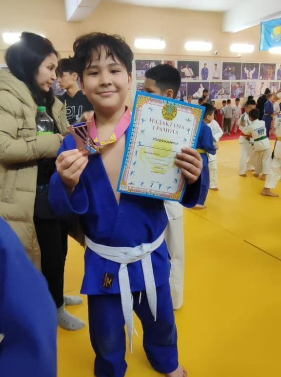 5" Б " сынып оқушысы Сапиев Муслимді кезекті лайықты жеңісімен құттықтаймыз! Муслим "дзюдо" күресінен "жоғары спорт шеберлігінің мамандандырылған мектебі Ашық Біріншілігінде 46 кг салмақ дәрежесінде 2013-2014 жылы туған жасөспірімдер арасында чемпион атанды. Біз сіздің жетістіктеріңізді мақтан тұтамыз және спорттық жолда одан әрі жеңістер тілейміз!
