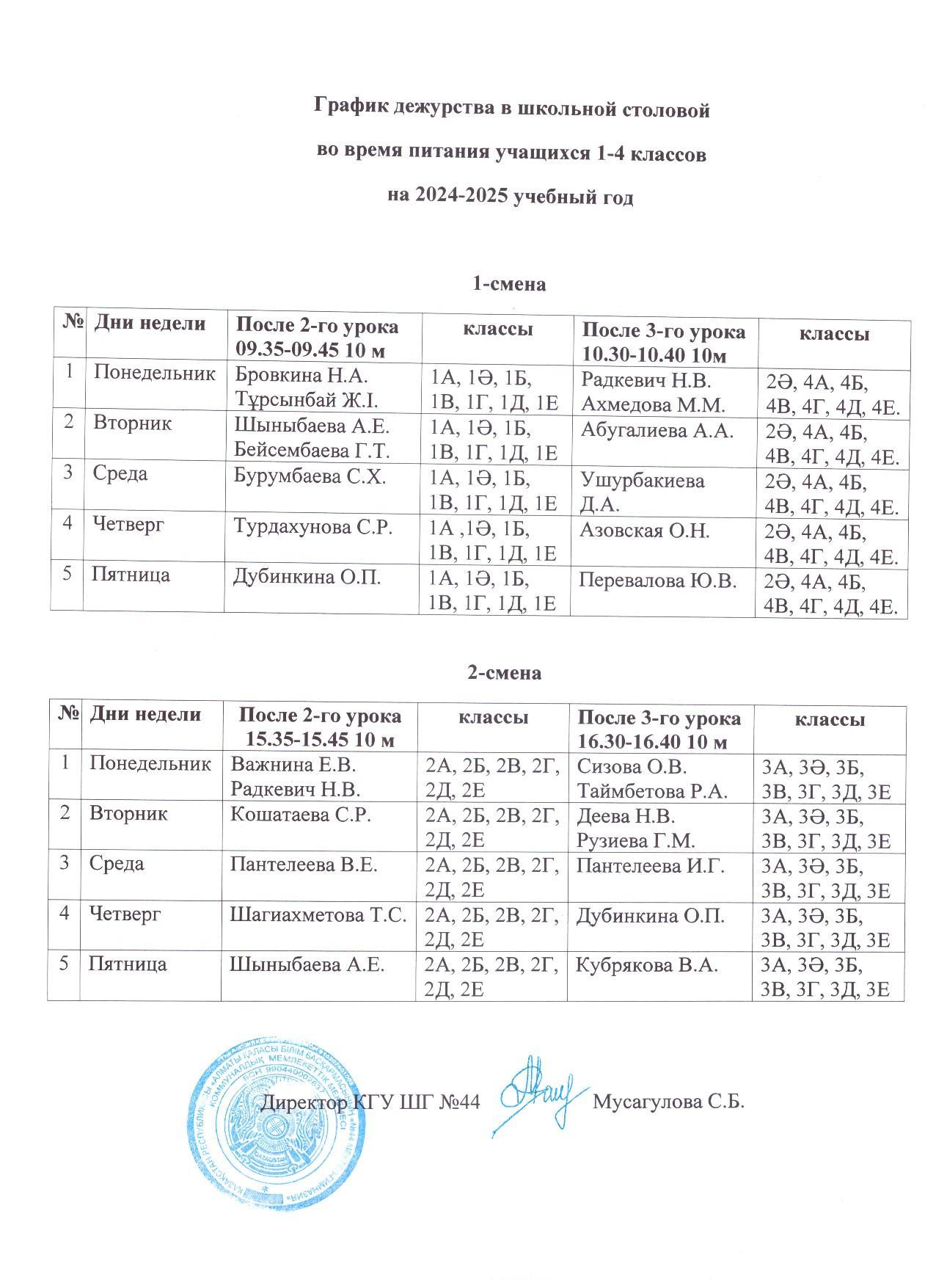 » График дежурства учителей в школьной столовой во время питания учащихся
