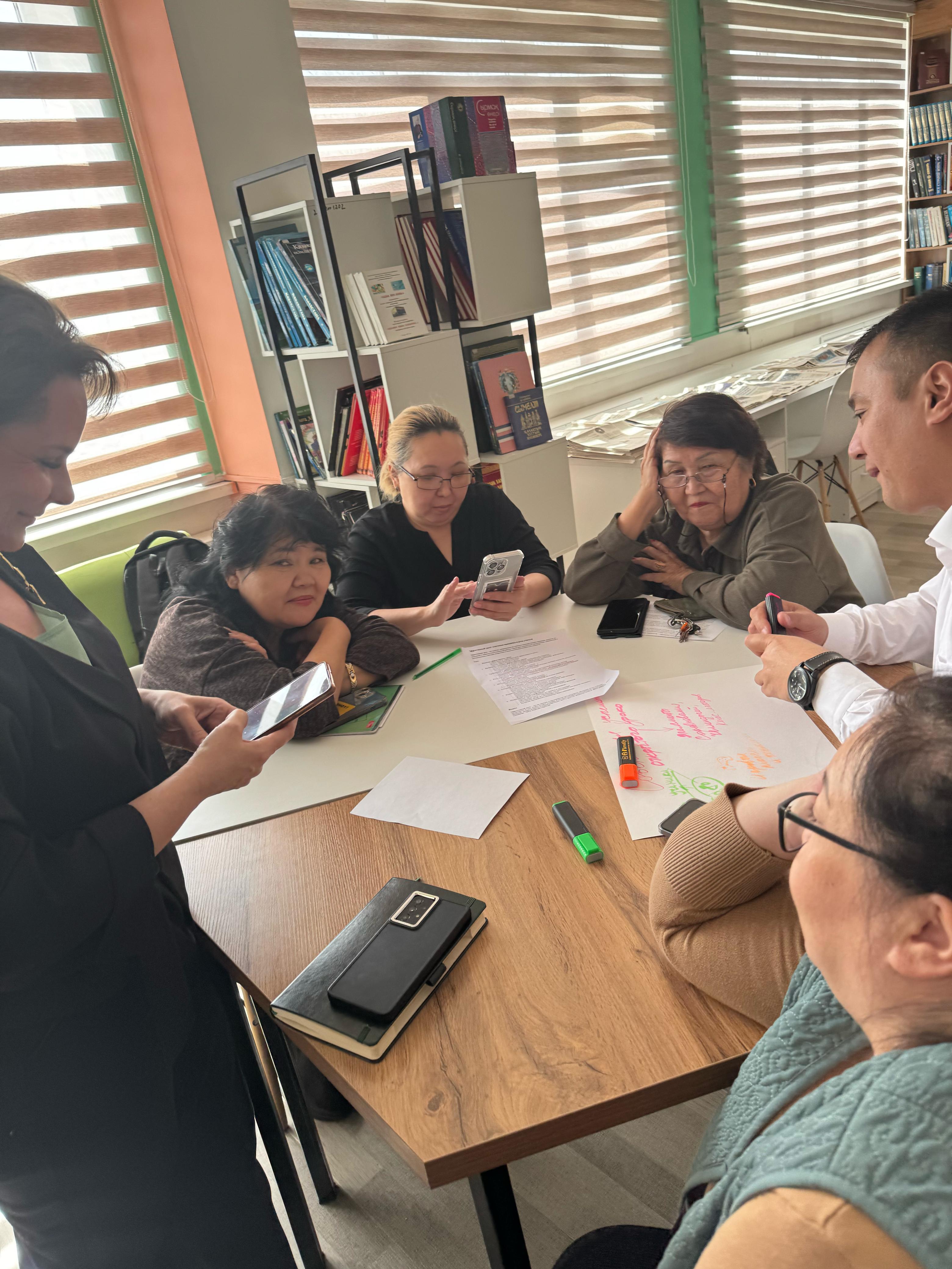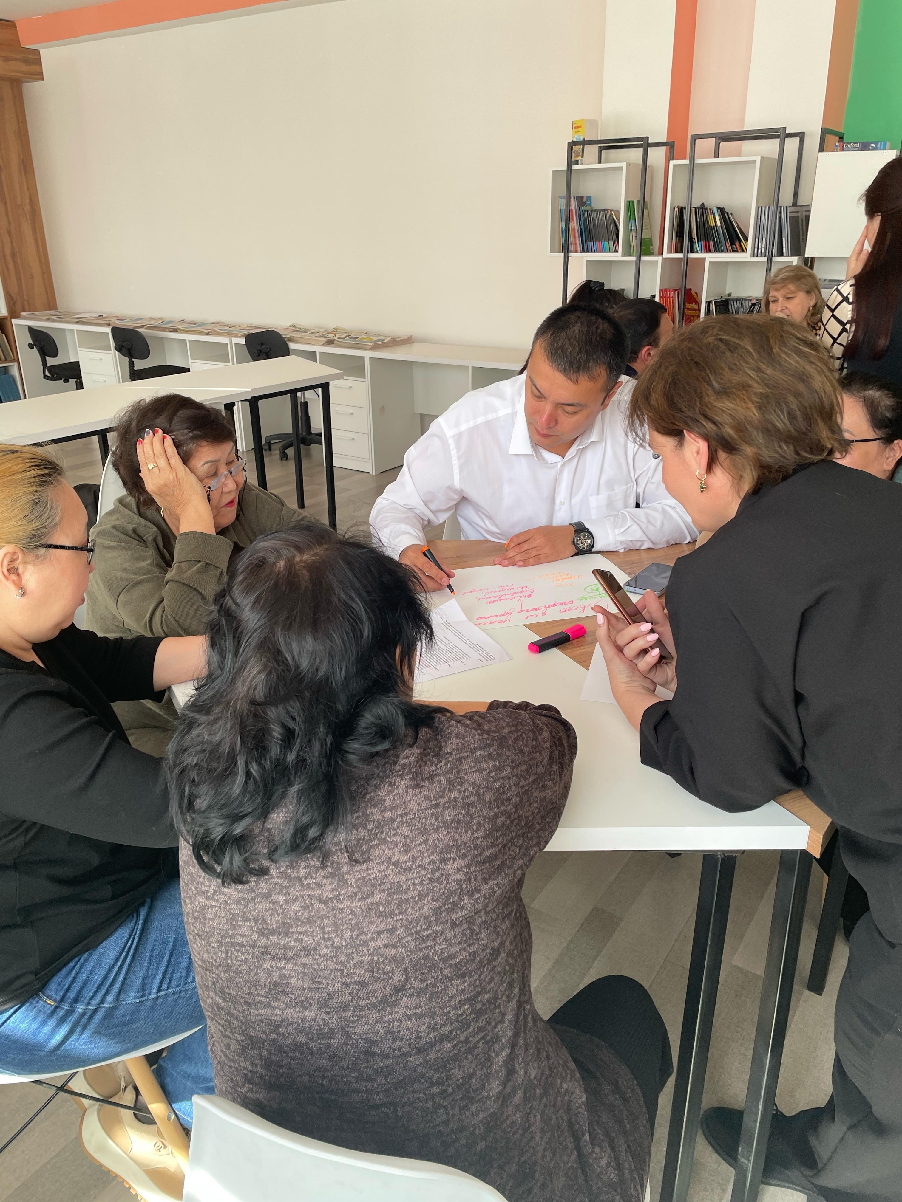 📝 Семинардың практикалық бөлігі қатысушылар кедергілер мен қиындықтарды талдап, плакаттар жасап, белсенді түрде тәжірибе алмасатын топтарда жұмыс істеуді қамтыды.