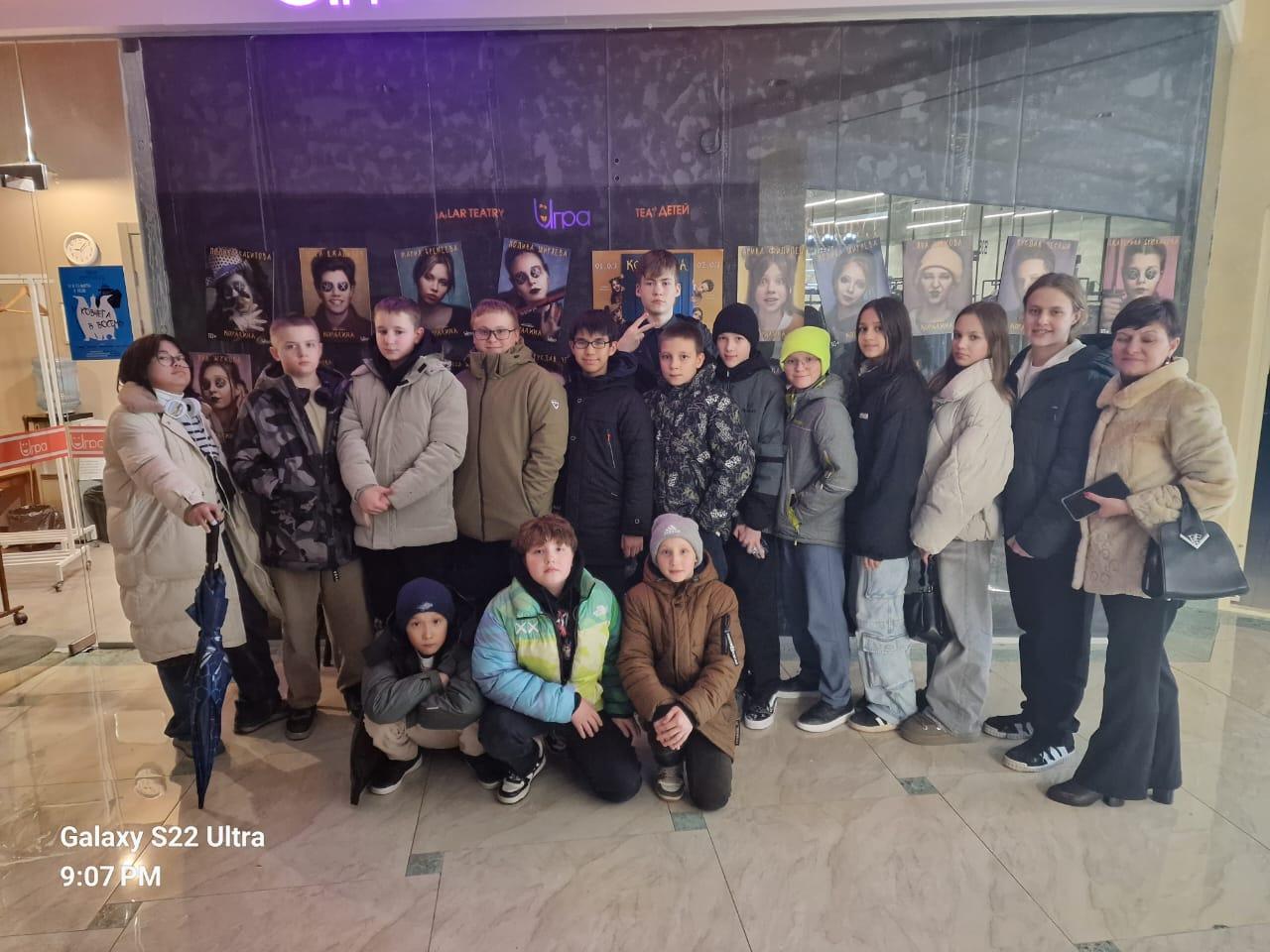 На весенних каникулах учащиеся 7Б класса посетили Театр детей "ИГРА", где с большим интересом посмотрели спектакль "Дорогая Оксана Сергеевна". Ребятам особенно понравилось, что на сцене играют такие же дети, как и они. Спектакль оказался не только увлекательным, но и познавательным, оставив яркие впечатления у каждого зрителя.