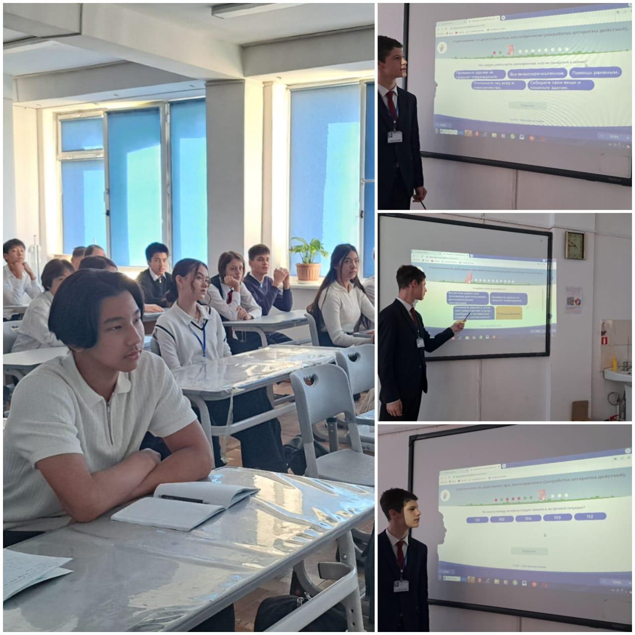 В рамках программы «Көмек» сегодня на классных часах в 10–11 классах прошли занятия на тему «Поведение во время землетрясения».