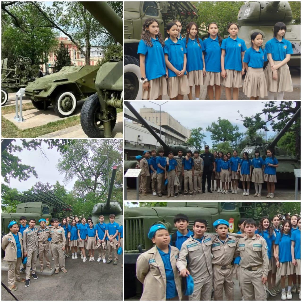Сегодня учащиеся 7 «З» класса школы-гимназии №44, участники военно-патриотического движения «Жас сарбаз», приняли участие в торжественном мероприятии, посвящённом открытию музея военной техники под открытым небом.