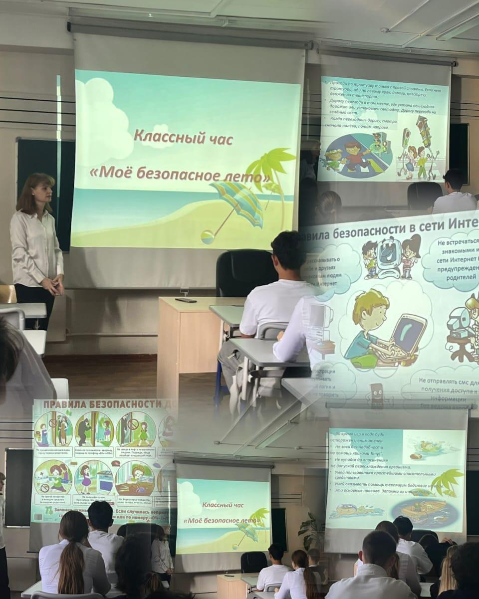 Мұғалімдер оқушыларға жолда, су жағасында, таулы аймақтарда және бейтаныс адамдармен қарым-қатынас кезінде өзін қалай ұстау керектігін еске салды. Сонымен қатар, интернет қауіпсіздігі мен жазғы демалыс кезіндегі күн тәртібін сақтау мәселелеріне де ерекше назар аударылды. Осындай әңгімелер балалардың қауіпсіздік ережелерін саналы түрде түсініп, жазғы демалыстарын пайдалы әрі қауіпсіз өткізуіне септігін тигізеді.