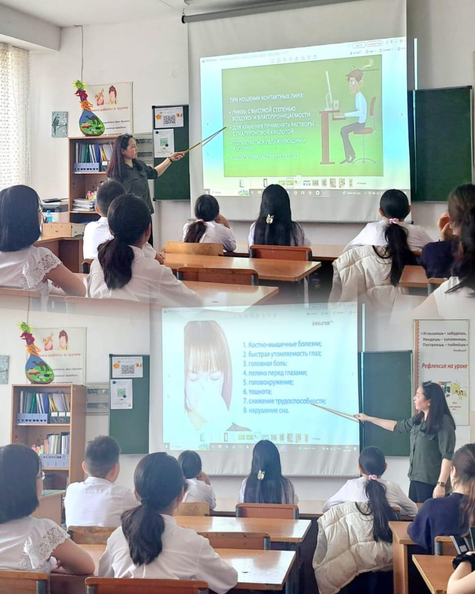Оқушылар жұмыс орнын дұрыс ұйымдастыру, үзіліс жасаудың маңызы және компьютермен жұмыс істеу кезінде шаршауды болдырмау жолдары туралы білді.