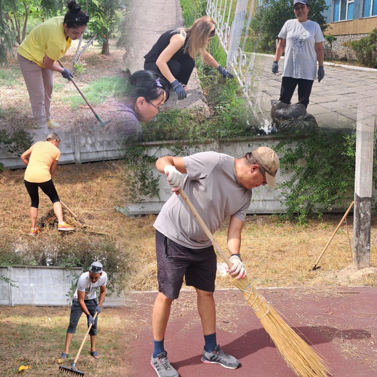 Чистый четверг в рамках "Таза Қазақстан". Сегодня в школе-гимназии №44 прошёл очередной Чистый четверг в рамках республиканской акции «Тaza Қазақстан». Сотрудники школы дружно вышли на уборку территории, наводили порядок, приводили в чистоту клумбы и двор.