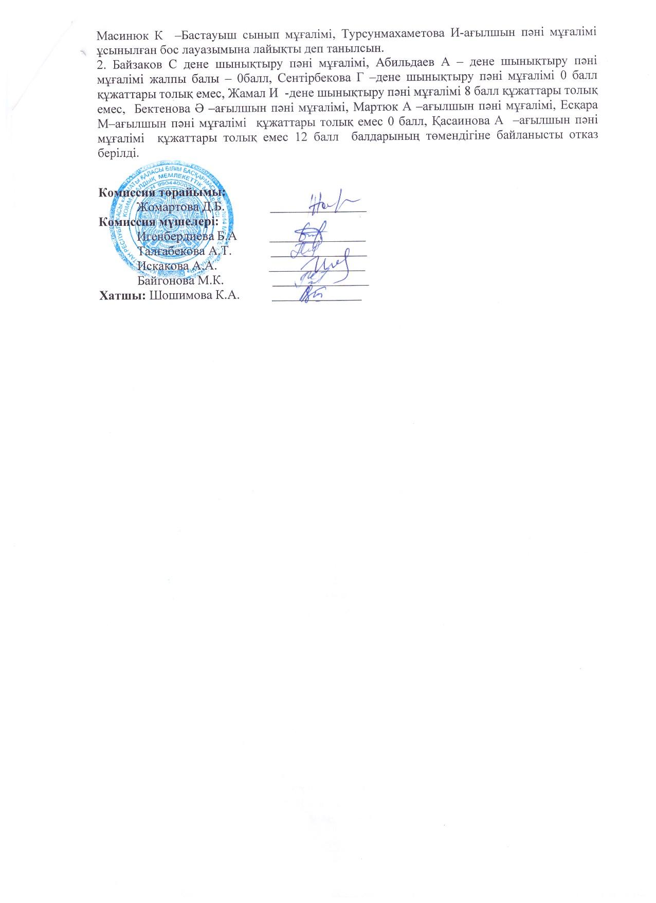 19 тамыз 2025 0 1 2 3 4 5 Бос лауазымдарға педагогтерді тағайындау туралы комиссия отырысының №1 хаттамасы