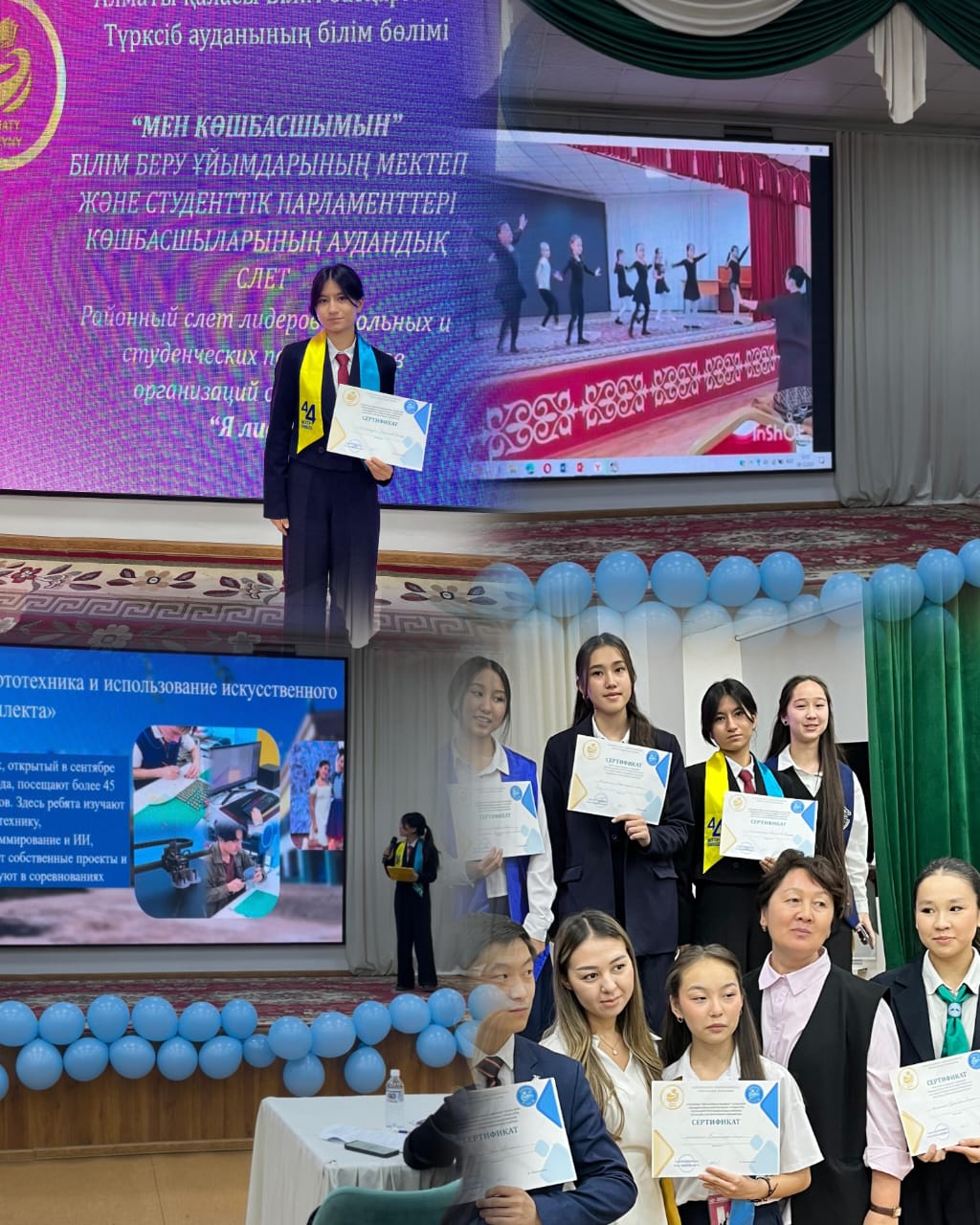 Аудандық «Мен көшбасшымын» байқауында мектеп және студенттік парламенттердің көшбасшылары бас қосқан додада 9 «Ж» сынып оқушысы Касимова Дильназ үздік нәтиже көрсетіп, қалалық слетке жолдама алды! ✨ Жас көшбасшымызды шын жүректен құттықтаймыз!