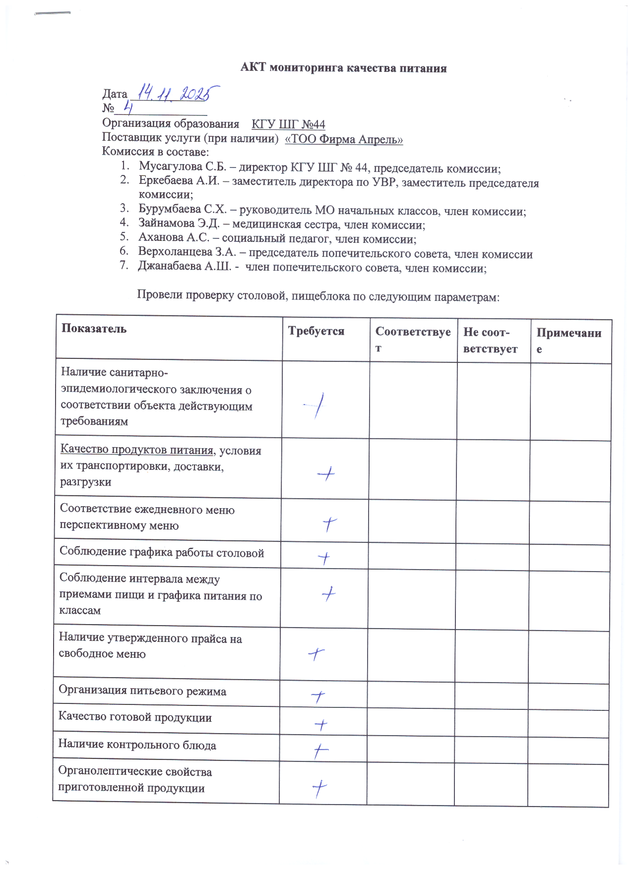 АКТ комиссии за качеством питания за ноябрь 2025г
