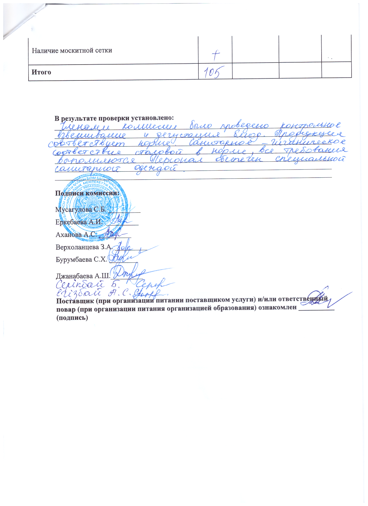 » АКТ комиссии за качеством питания за ноябрь 2025г