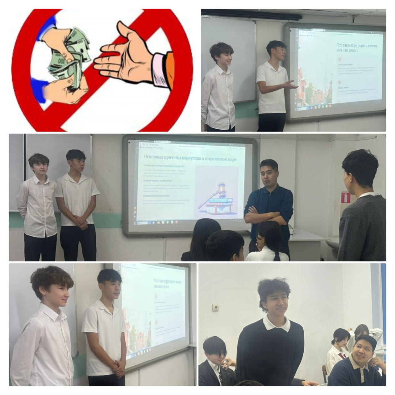 «Мы против коррупции» с 1 по 11 классы. В ходе занятий учащимся разъяснялись основные понятия, связанные с коррупцией, её негативные последствия для общества, а также важность честности, справедливости и гражданской ответственности.