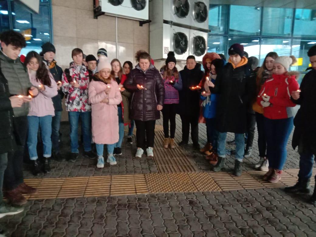 30 желтоқсан 2019 0 1 2 3 4 5 Общенациональный траур 28 декабря в день общенационального траура, наши учащиеся в сопровождении учителей физкультуры и НВП почтили память минутой молчания и возложили цветы, погибшим в авиакатастрофе