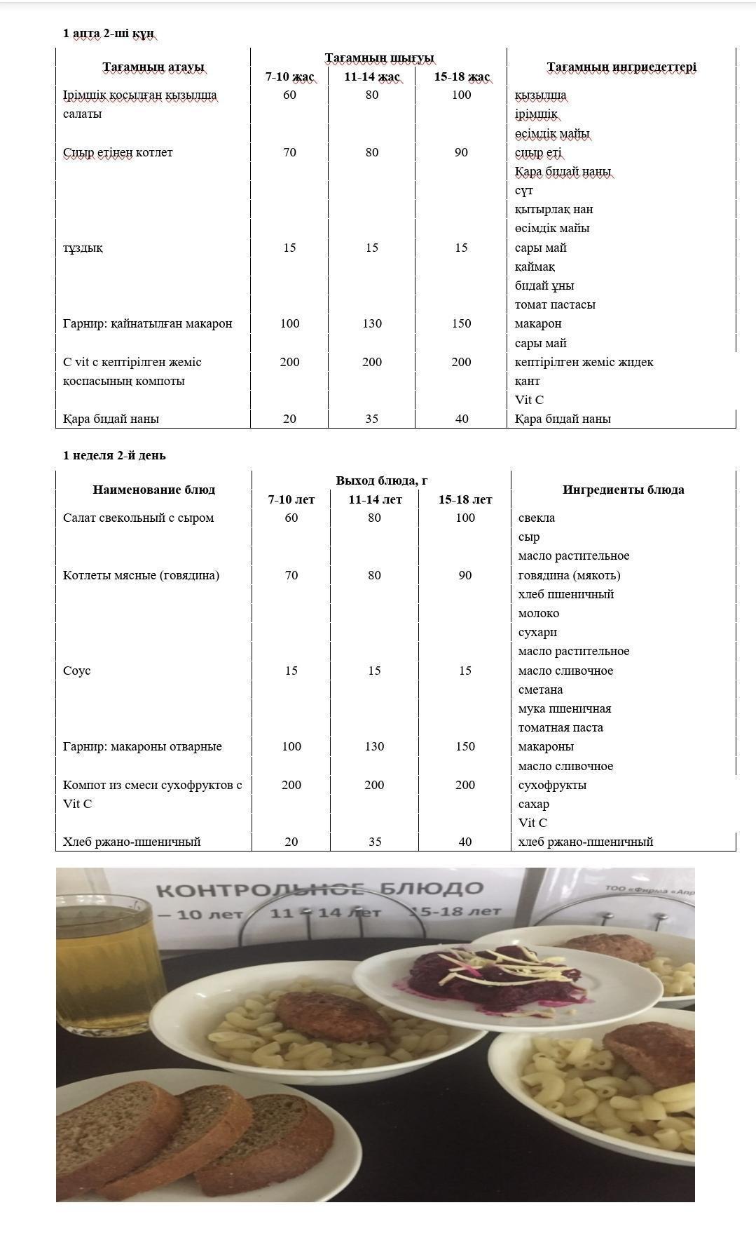 Тамақтануды ұйымдастыру бойынша жұмыс жоспары