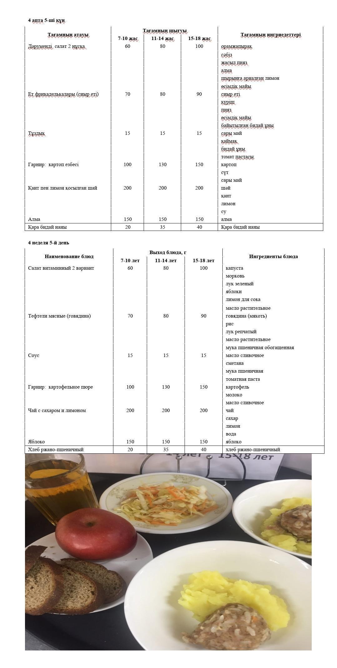 Тамақтануды ұйымдастыру бойынша жұмыс жоспары
