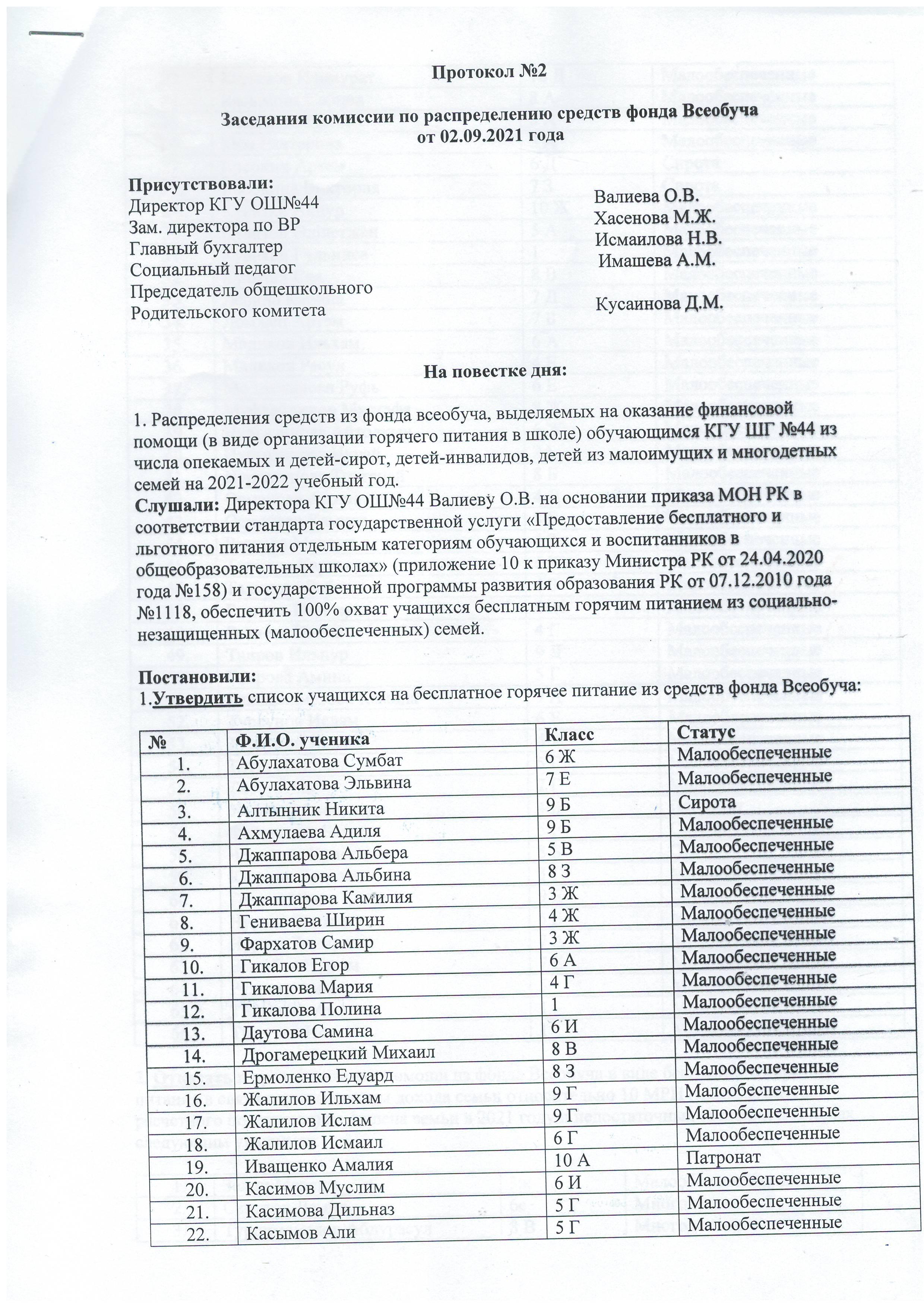 » Протокол. Заседания комиссии по распределению средств фонда Всеобуча