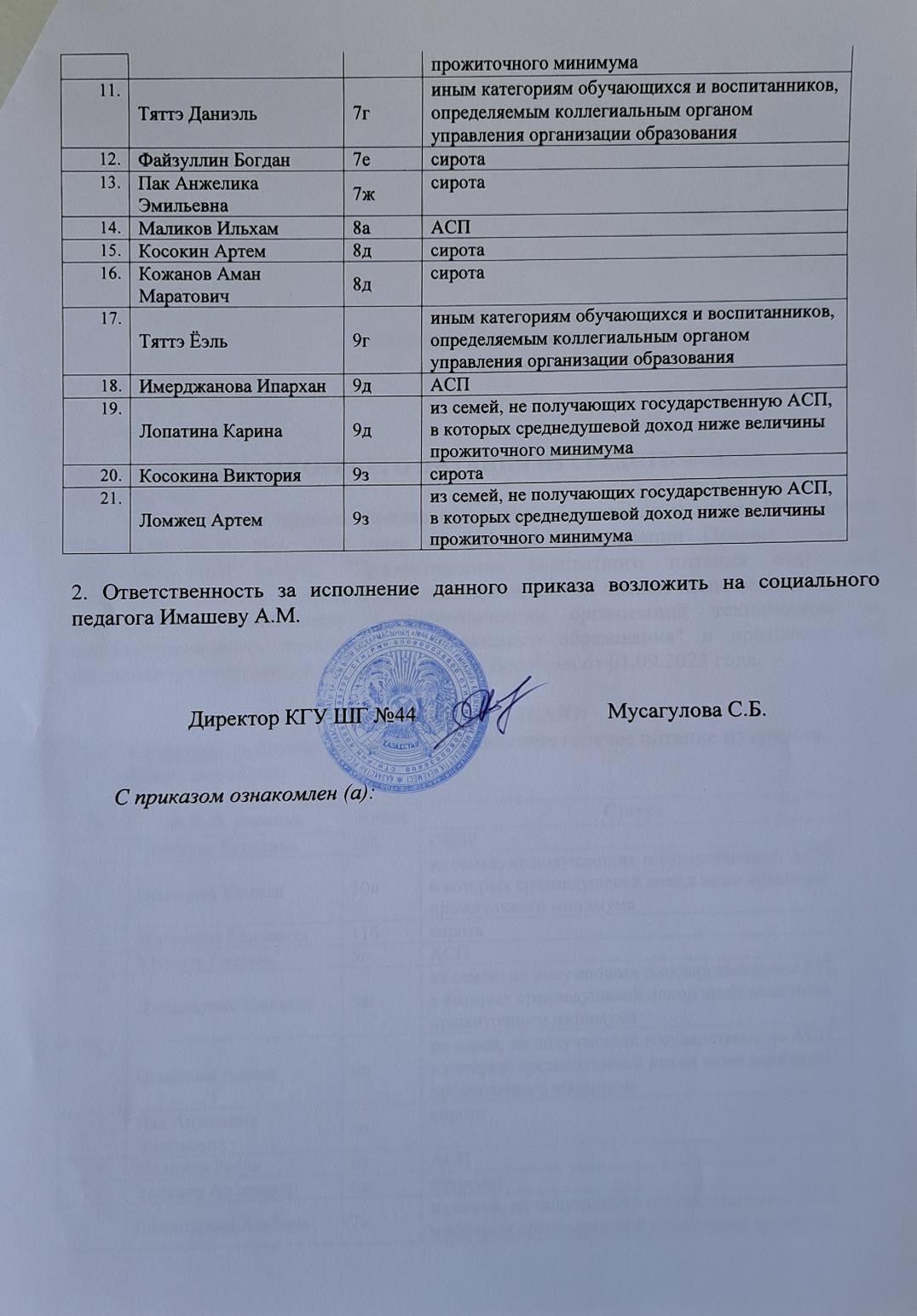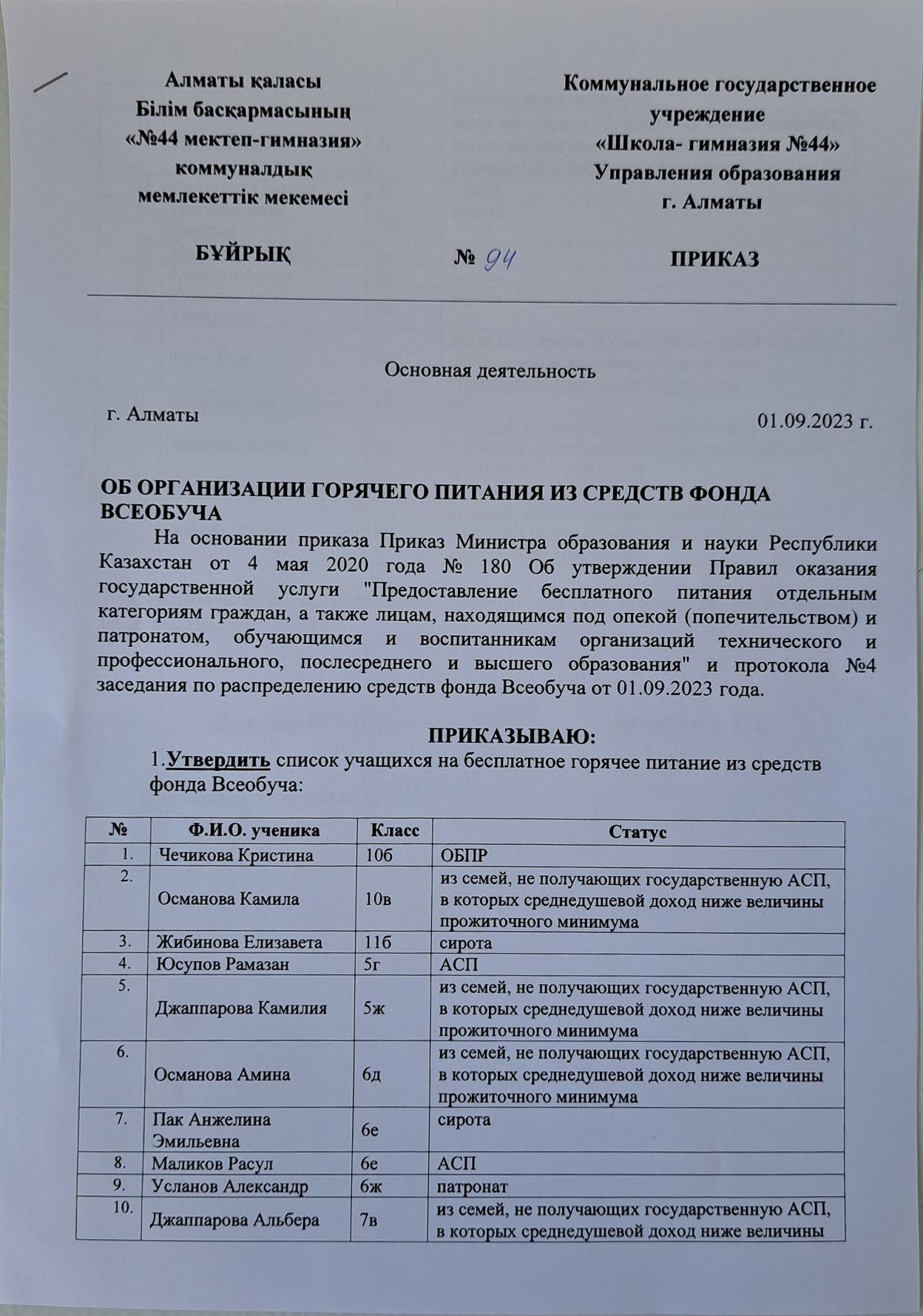 01 қыркүйек 2023 0 1 2 3 4 5 ХӘОТ-нан тегін ыстық тамаққа бекітілген 5-11 сынып оқушылары тізімі/Список учащихся 5-11классов из числа СУСН на бесплатное горячее питание