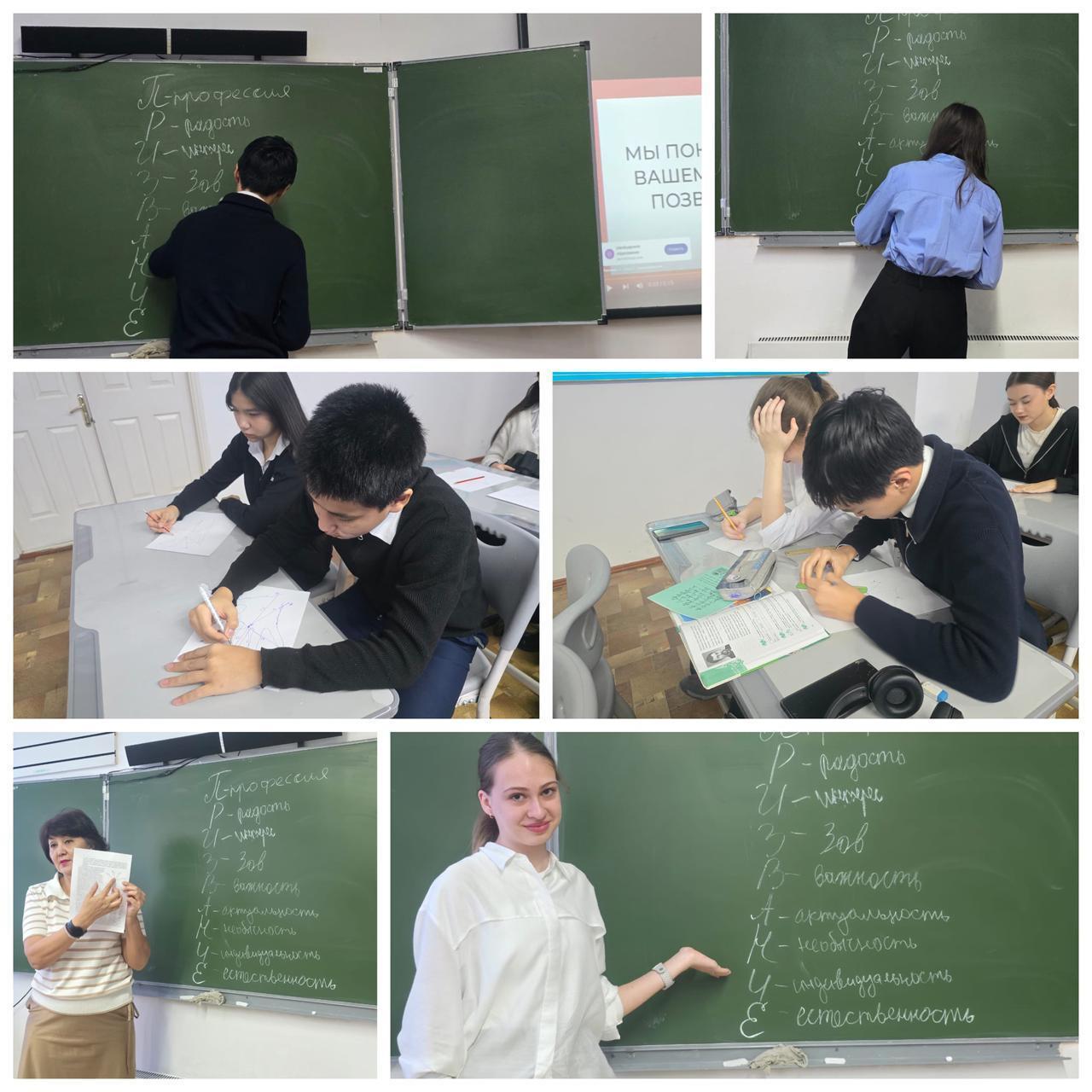 Біздің мектептің сегізінші сынып оқушылары өздерінің болашағы мен мамандық таңдауы туралы ойлана алатын "Кәсіп іздеуде" атты сынып сағатына қатысты. Бұл жаста жасөспірімдерде мансап туралы жиі сұрақ туындайды және біздің мақсатымыз — оларға дұрыс таңдау жасауға көмектесу. Сабақ барысында оқушылар мамандық таңдауға қалай жақындау керектігін, болашақта қандай бағыттар талап етілетінін білді, сондай-ақ қызықты ойындарға қатысып, пайдалы презентациямен танысты.