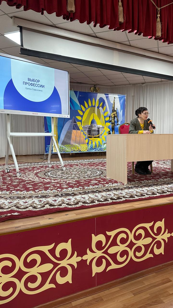 Сегодня в нашей школе в соответствии с планом профориентационной работы КГУ «Центр трудовой мобильности города Алматы» Управления занятости и социальных программ состоялась встреча с Жакуповой Еркеш Садыковной. Учащиеся узнали о самых востребованных профессиях, о том, как правильно сделать выбор в мире профессий, а также о критериях, которые следует учитывать при выборе будущей карьеры. Еркеш Садыковна рассказала о значении профессиональной подготовки, современных тенденциях на рынке труда и возможностях для дальнейшего обучения и развития. В ходе встречи ребята задавали вопросы о трудоустройстве, востребованных навыках и карьерных перспективах.