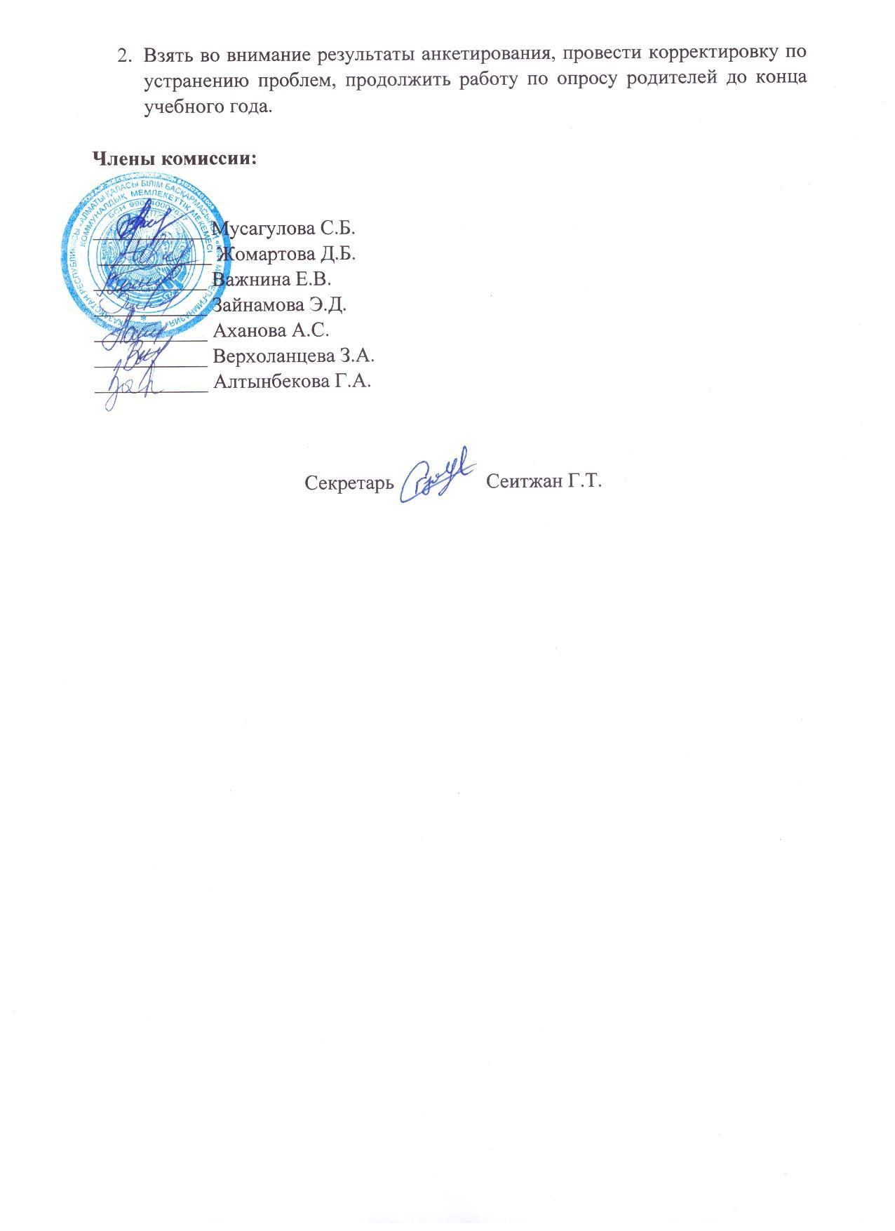 Тамақтану сапасын мониторингілеу жөніндегі комиссия отырысының хаттамасы №2 /№2 Протокол заседания комиссии по мониторингу за качеством питания