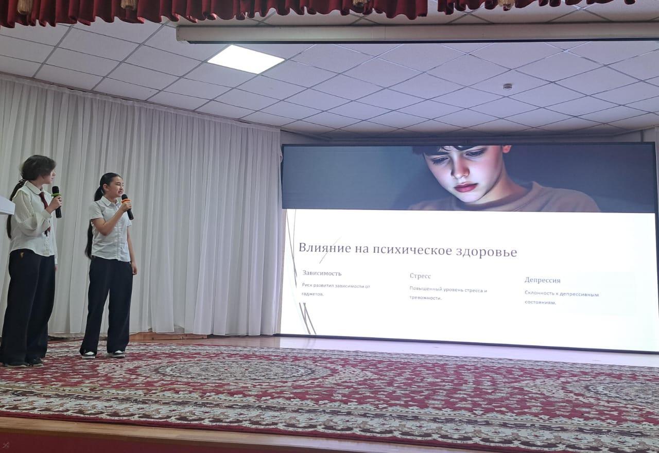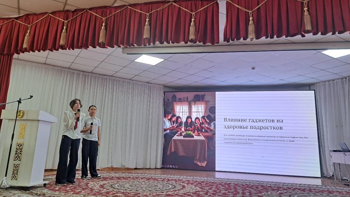 7 «Г» сынып оқушылары «Гаджеттердің адам денсаулығына әсері» тақырыбында жоба қорғады. Олар зерттеу жүргізіп, мазмұнды әрі қызықты презентация дайындап, өз жұмыстарын сәтті қорғап шықты. Тақырыптың өзектілігі, командалық жұмыс және креативті көзқарас олардың проект н есте қаларлық етті. Жарайсыңдар, 7 «Г»!